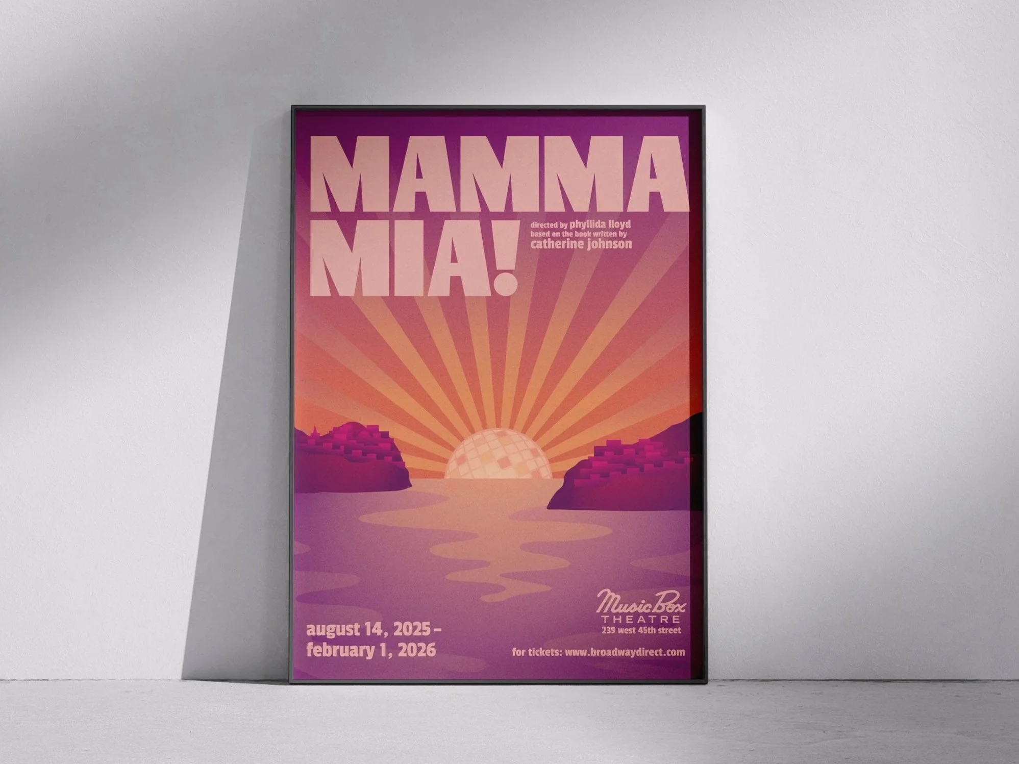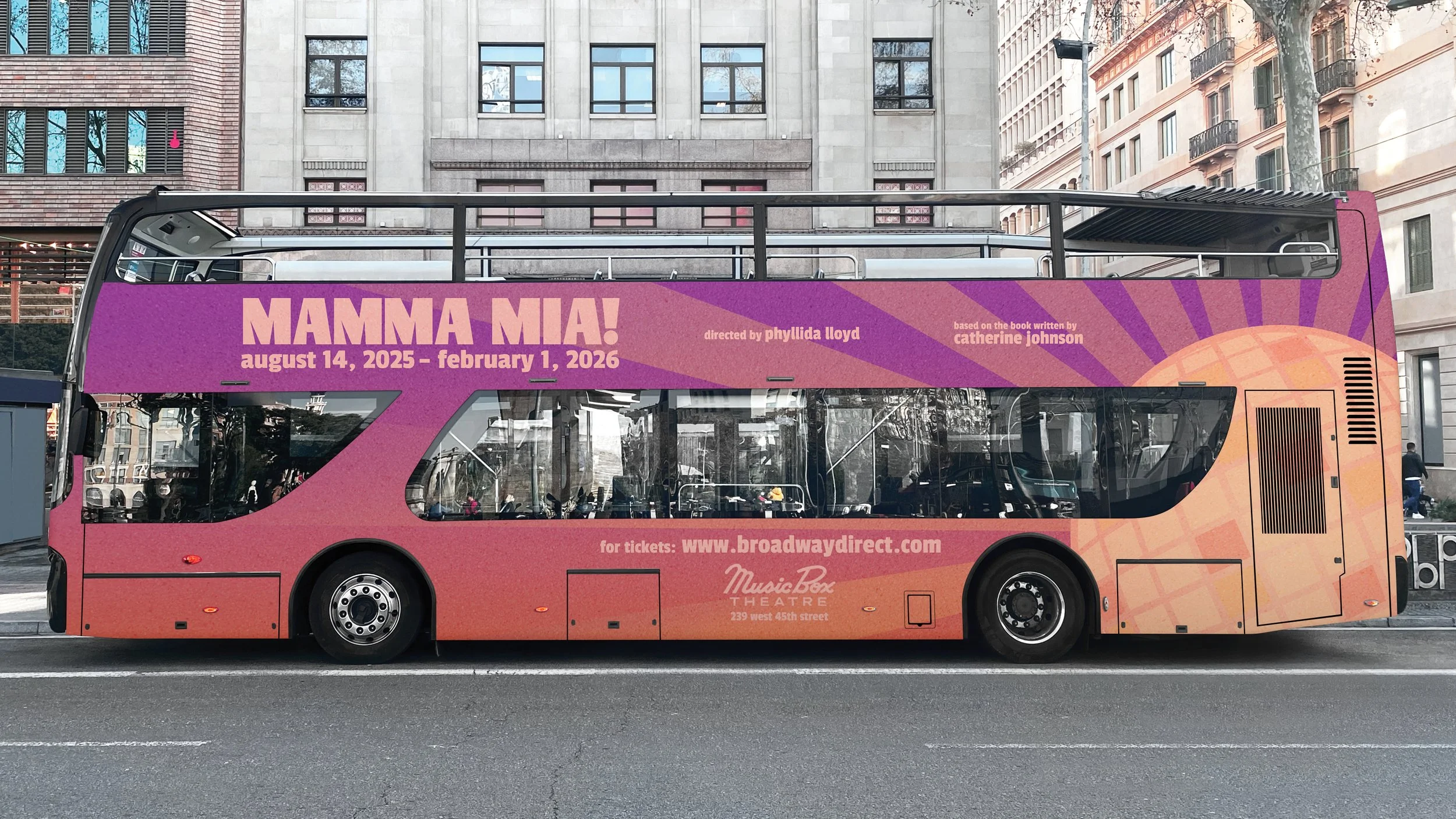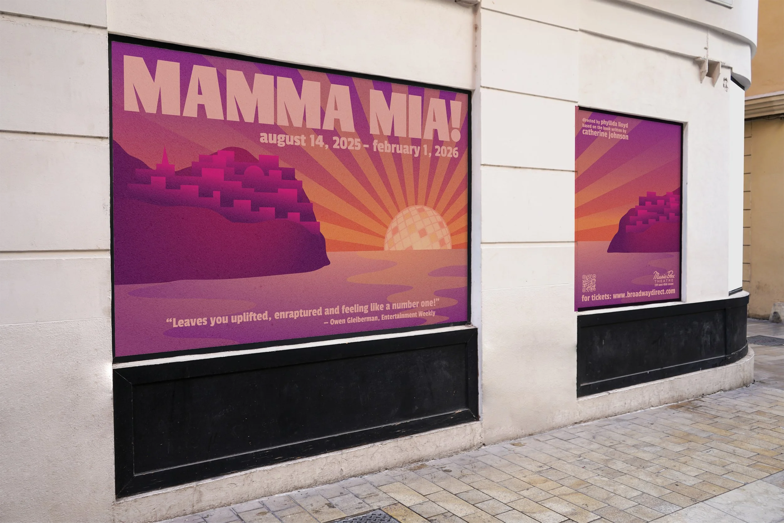 For a project with multiple assets, a clear system with strong concepts is needed to create unity. I created several pieces to a theater campaign for Mamma Mia! on Broadway. Complete, I designed a poster, bus wrap, storefront signage, a playbill, and web graphics, all using original artwork.